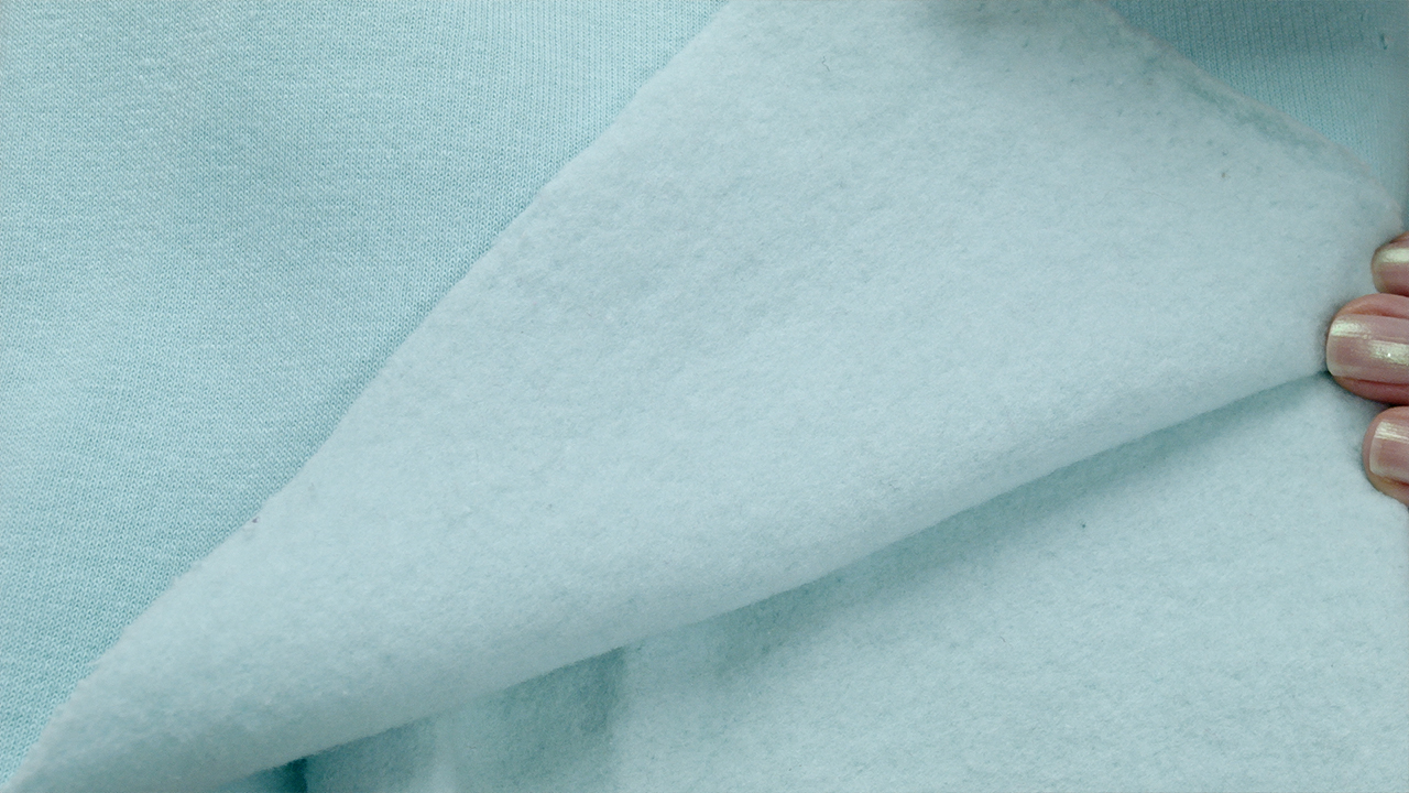 Бывает с начесом. Волокна начеса бывают короткие и длинные, что определяет густоту и мягкость изнанки.